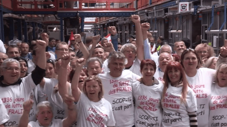 Nach 3 Jahren haben die 76 verbleibenden Arbeiter_innen von Fralib im Mai 2014 den Konflikt mit dem Lebensmittel-Multi Unilever beendet und eine Genossenschaft gegründet: die Scop-ti.